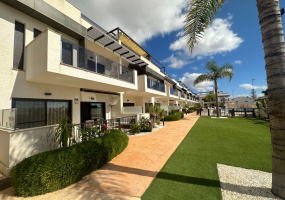 Semi-detached house in the exclusive Aldeas de Aguamarina residential area, located in Cabo Roig. The 72 m? home features 3 bedrooms, one of them on the ground floor, 2 full bathrooms, a spacious living-dining room, and a spacious separate kitchen with an open-plan utility room.. .