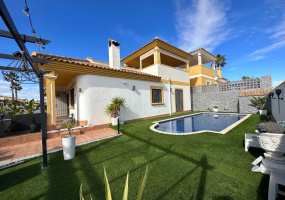 We are delighted to bring to the market this superb Villa in the sought after area of Vistabella between San Miguel de Salinas and Jacarilla. A quiet semi rural place but very close to all ameninities giving you the best of both worlds. The property sits on a plot over 1000m2 and benefits of a private pool and lots of outdoor space perfect for relaxing , sun bathing and entertaining.